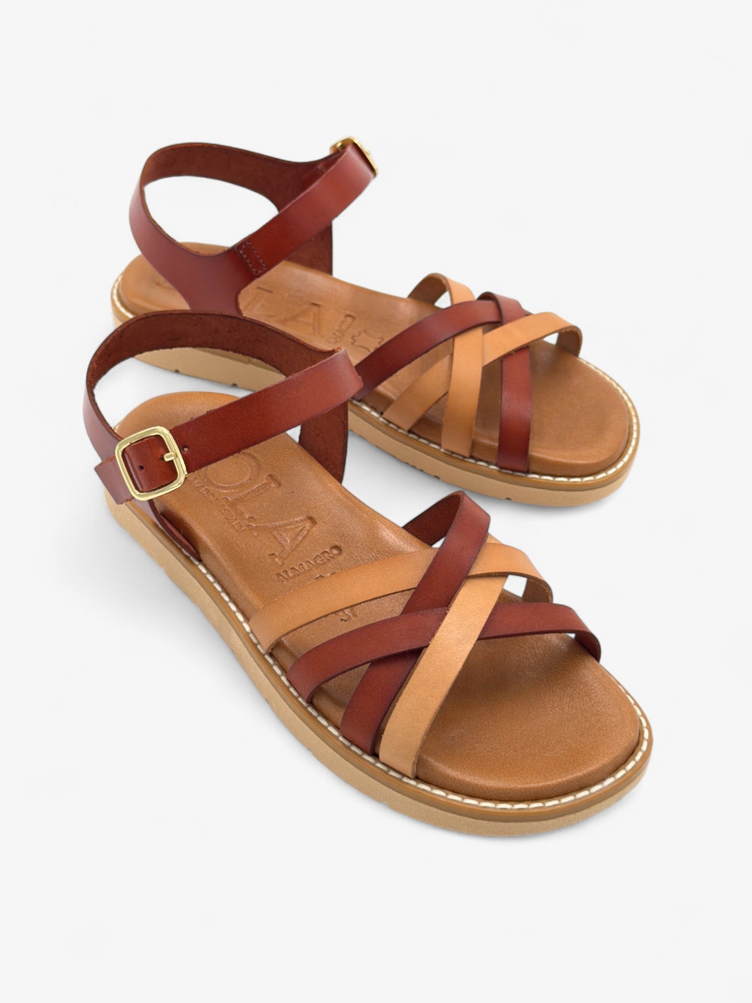 La sandalia LUNA se reinventa en tonos cuero claro y rojo teja para ofrecer una versión cálida, versátil y con personalidad. Sus tiras cruzadas de piel aportan estructura sin perder ligereza, mientras la suela flexible y el cierre ajustable aseguran una comodidad ideal para el día a día. Un clásico con alma mediterránea.
